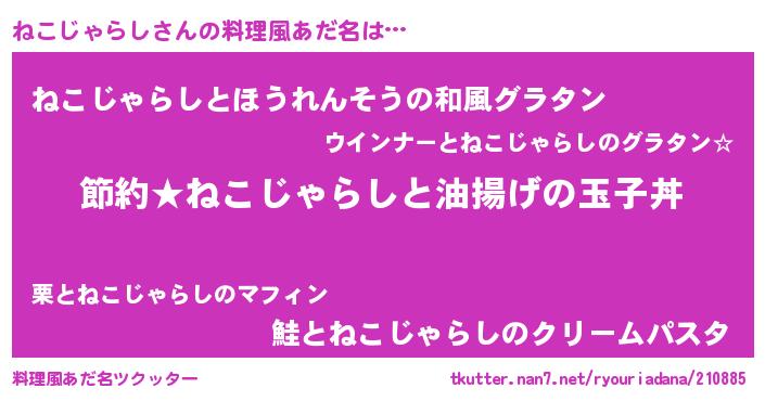 | 男性向けラノベタイトル風あだ名 | 『ねこじゃらしの憂鬱』 |