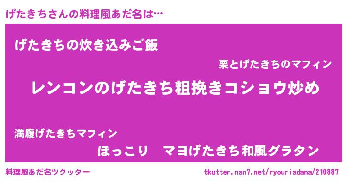| 意味不明あだ名 | 『自称げたきち』『永久保存げたきち』 |