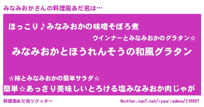| ヘコむあだ名 | 『みなっふぃ~』『みなみおか(笑)』 |