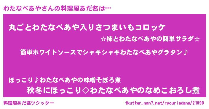 | 男性向けラノベタイトル風あだ名 | 『わたなべあやの嫁は女の子じゃないと思った?』 |