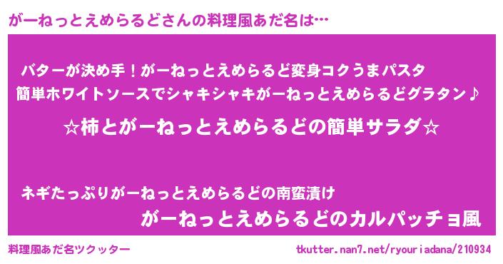 | 男性向けラノベタイトル風あだ名 | 『冴えないがーねっとえめらるどの育てかた』 |