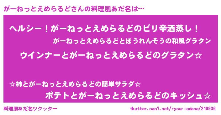 | 欧米人風あだ名 | 『がーねっとえめらるどクリステル』 |