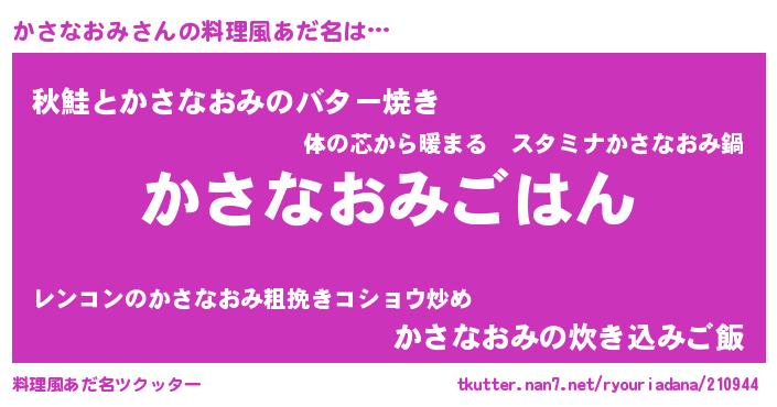 | 男性向けラノベタイトル風あだ名 | 『カサナオミスレイヤー』 |