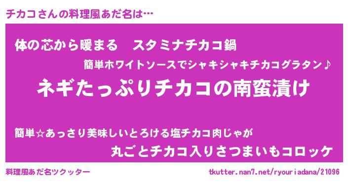 | 欧米人風あだ名 | 『マイケルチカコ』『チカコクリステル』 |