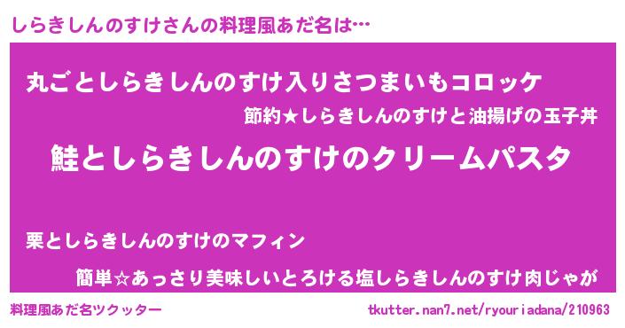 | 男性向けラノベタイトル風あだ名 | 『ノーゲーム・ノーシラキシンノスケ』 |