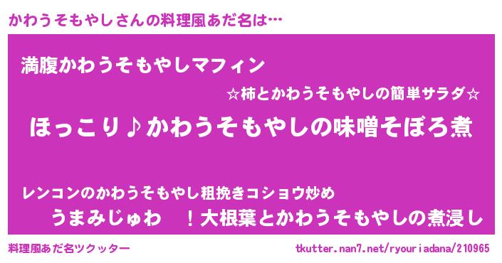 | 2回繰り返すあだ名 | 『かわかわ』『ぎすぎす』『かかわわ』 |