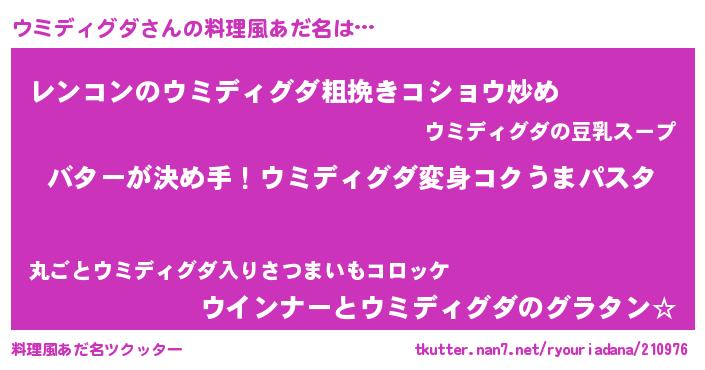 | ヘコむあだ名 | 『なまこ酢』『ウミを』『ウミもー』 |