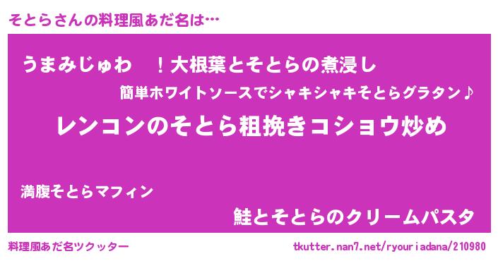 | 欧米人風あだ名 | 『ケンブリッジそとら』『ダニエルそとら』 |
