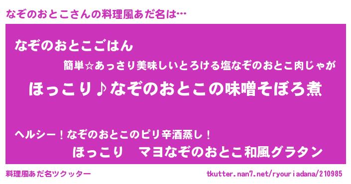 | ピコ太郎風あだ名 | 『ナコ六郎』『ピコナ郎』『ピナ八郎』 |