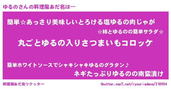 | 意味不明あだ名 | 『住所不定無職ゆるの(98歳)』 |