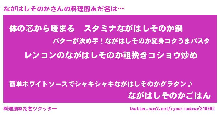 | 胡散臭い通販商品みたいなあだ名 | 『ガンによく効く冬虫夏草…その名も「ながはしそのか」』 |