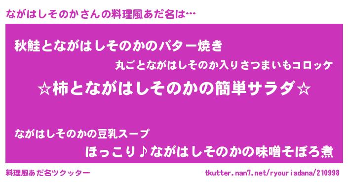 | 胡散臭い通販商品みたいなあだ名 | 『来世でも幸せになれる健康食品…その名も「ながはしそのか」』 |