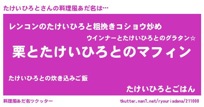 | ヘコむあだ名 | 『豆乳』『たけお』『たけにー』 |