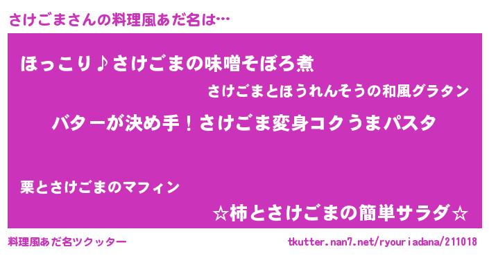 | 欧米人風あだ名 | 『ダニエルさけごま』『マイケルさけごま』 |