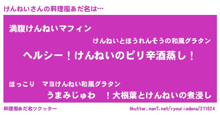 | 男性向けラノベタイトル風あだ名 | 『Re:けんねいから始める異世界生活』 |