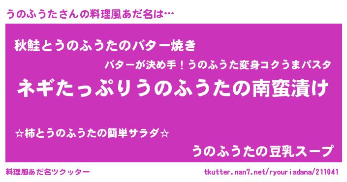 | ピコ太郎風あだ名 | 『ウコ二郎』『ピコウ郎』『ウノ十郎』 |