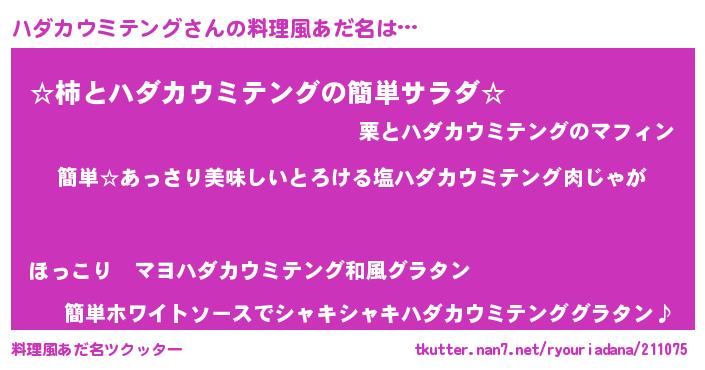 | ヘコむあだ名 | 『ハダカウミテング(笑)』『ハダを』 |