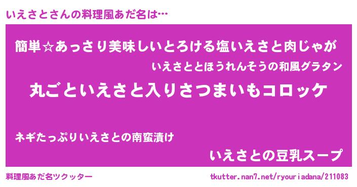 | 意味不明あだ名 | 『住所不定無職いえさと(77歳)』 |