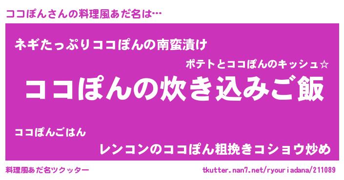| 意味不明あだ名 | 『ペロリンココぽん』『自称ココぽん』 |