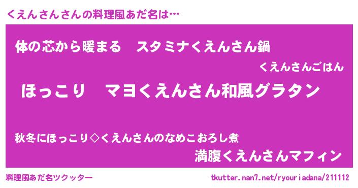 | ヘコむあだ名 | 『酢こんぶ』『くえんさん(笑)』 |