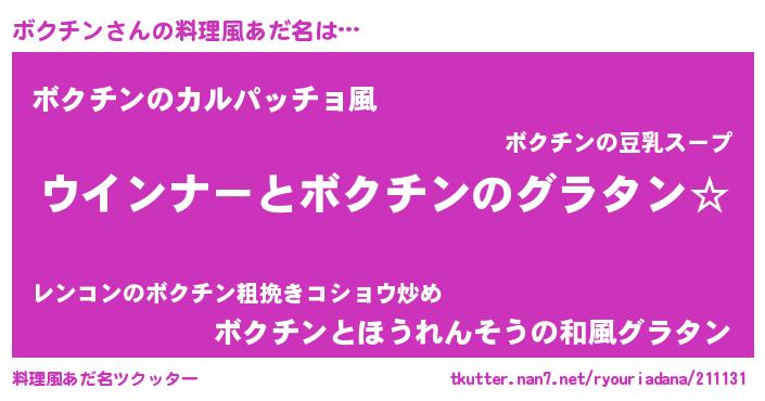 | 胡散臭い通販商品みたいなあだ名 | 『世界が平和になる高級そうな壺…その名も「ボクチン」』 |