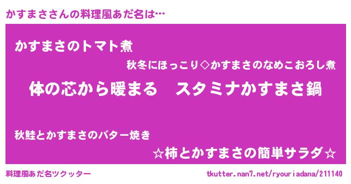 | ヘコむあだ名 | 『牛乳』『かすまさ(震え声)』 |
