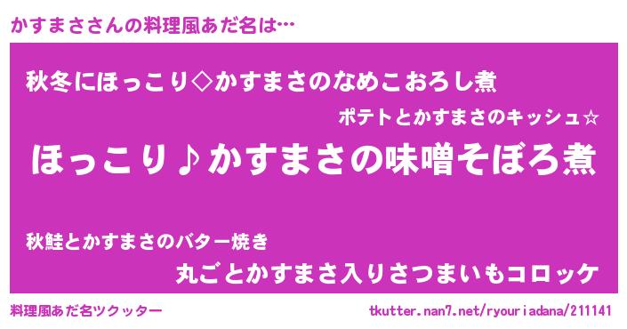 | 男性向けラノベタイトル風あだ名 | 『かすまさの憂鬱』 |