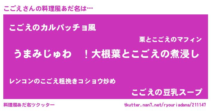 | 意味不明あだ名 | 『こごえフォーエバー』『自称こごえ』 |