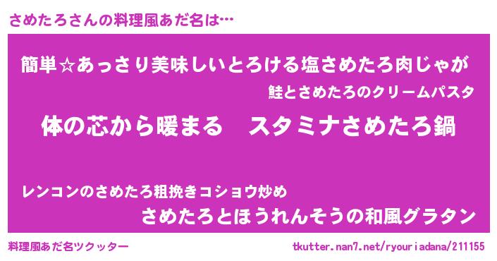 | 意味不明あだ名 | 『さめたろフォーエバー』『自称さめたろ』 |