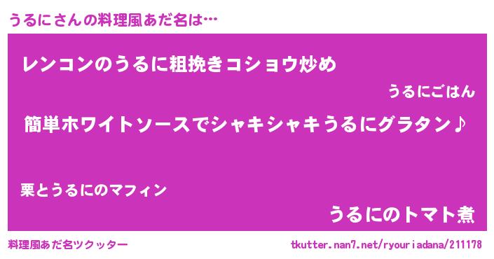 | 男性向けラノベタイトル風あだ名 | 『うるにの嫁は女の子じゃないと思った?』 |