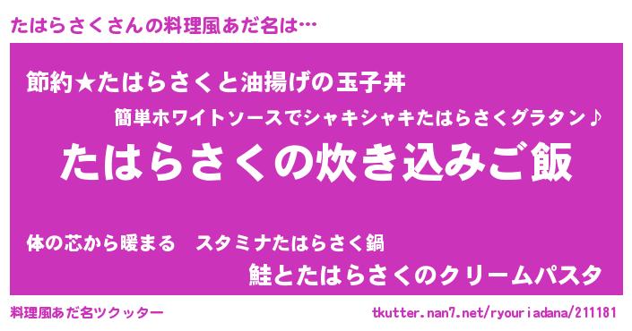 | 胡散臭い通販商品みたいなあだ名 | 『億万長者になれる霊験あらたかなお札…その名も「たはらさく」』 |