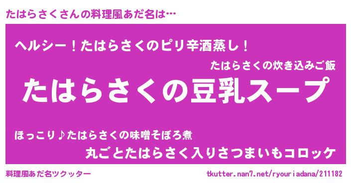 | 女子向けラノベタイトル風あだ名 | 『たはらさくは平凡を望む』 |