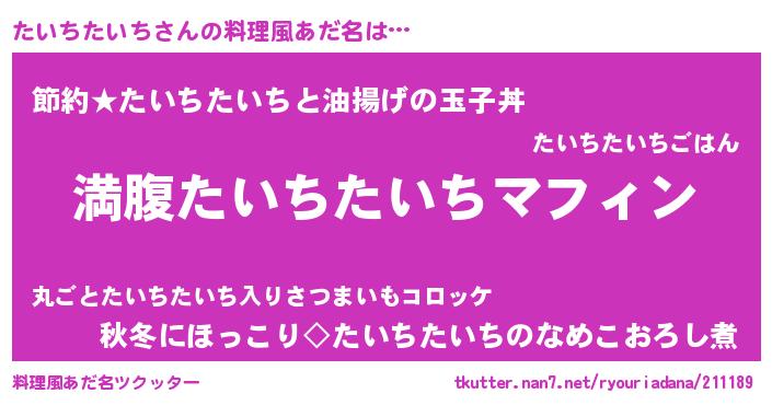 | 男性向けラノベタイトル風あだ名 | 『たいちたいちという概念が存在しない退屈な世界 』 |
