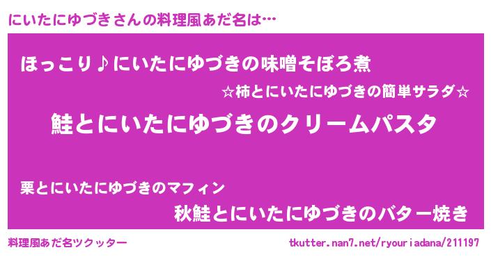 | 男性向けラノベタイトル風あだ名 | 『ノーゲーム・ノーニイタニユヅキ』 |