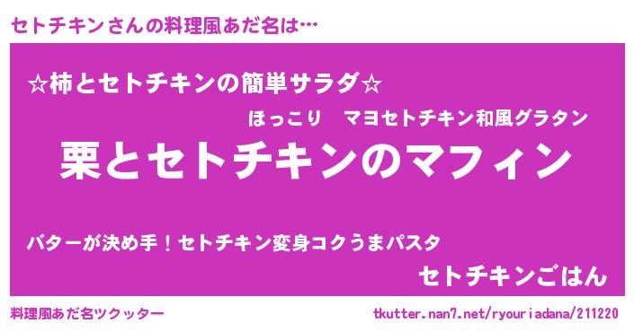 | 意味不明あだ名 | 『たけのこ科セトチキン属』 |