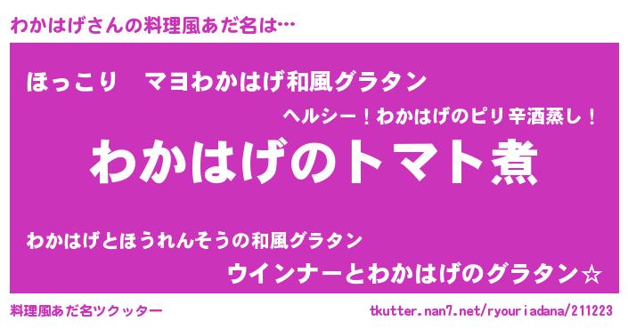 | 胡散臭い通販商品みたいなあだ名 | 『100人中100人が認めたマグネット磁石…その名も「わかはげ」』 |