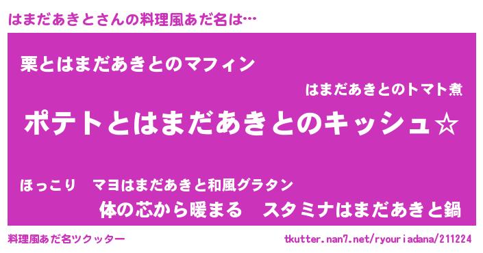 | 女子向けラノベタイトル風あだ名 | 『はまだあきとの卵を拾いまして』 |