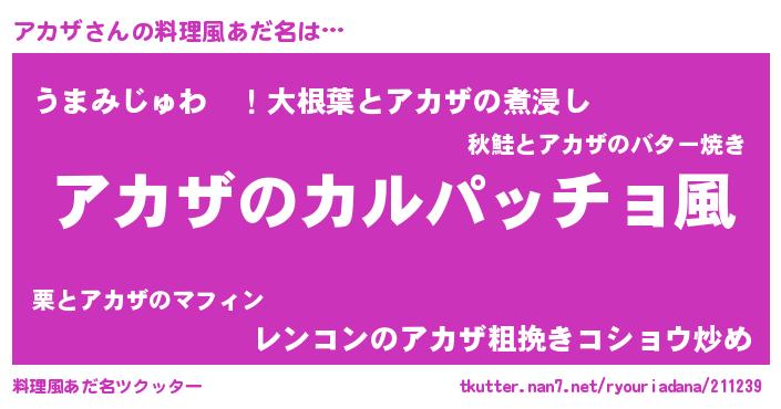 | 意味不明あだ名 | 『住所不定無職アカザ(7歳)』『自称アカザ』 |