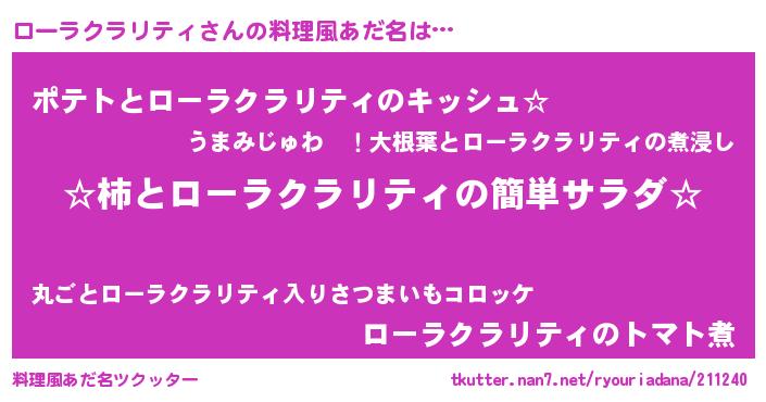 | 意味不明あだ名 | 『とにかく怪しいローラクラリティ』 |