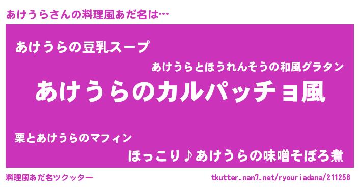 | ヒーロー風カッコイイあだ名 | 『仮面アケダー』『暗黒騎士アケ』 |