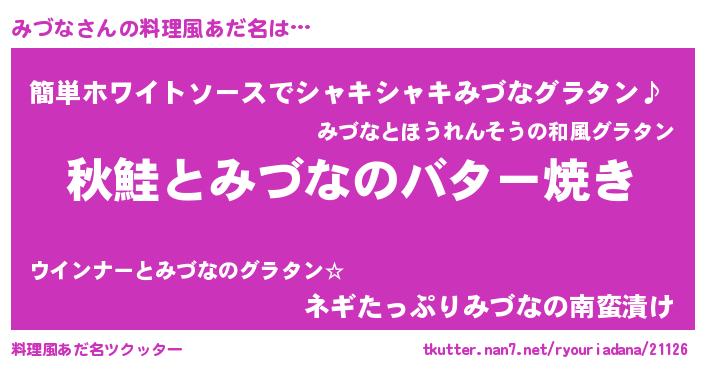 | 女子向けラノベタイトル風あだ名 | 『みづなの契約王妃』『みづな様がみてる』 |