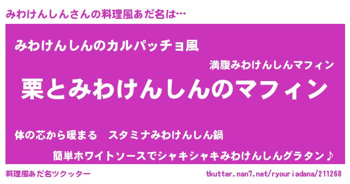 | 意味不明あだ名 | 『住所不定無職みわけんしん(7歳)』 |
