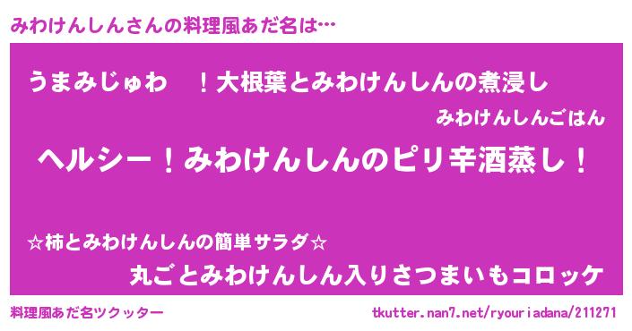 | 意味不明あだ名 | 『自称みわけんしん』 |