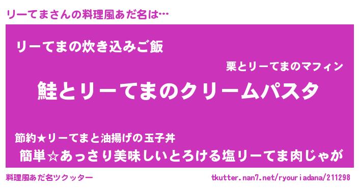 | 女子向けラノベタイトル風あだ名 | 『死神リーてまの再婚』 |