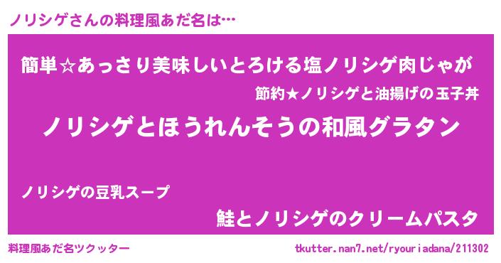 | 女子向けラノベタイトル風あだ名 | 『ノリシゲの玉の輿計画!』 |