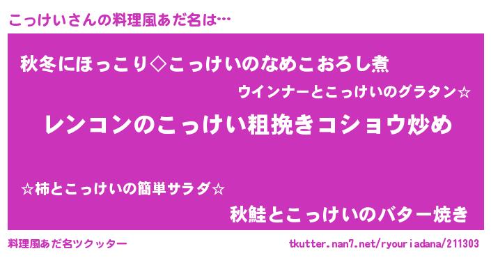 | 意味不明あだ名 | 『自称こっけい』『永久保存こっけい』 |