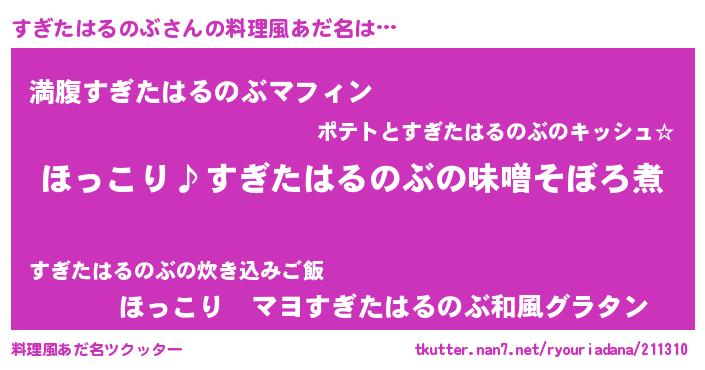 | 男性向けラノベタイトル風あだ名 | 『すぎたはるのぶの憂鬱』 |