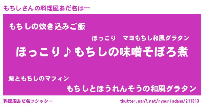 | 男性向けラノベタイトル風あだ名 | 『もちしの憂鬱』『はたらくもちしさま!』 |