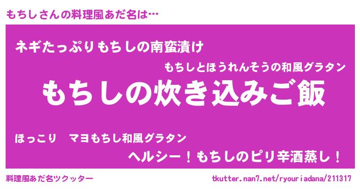 | 意味不明あだ名 | 『ペロリンもちし』『自称もちし』 |