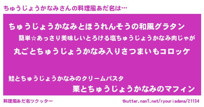 | 意味不明あだ名 | 『住所不定無職ちゅうじょうかなみ(91歳)』 |